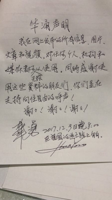 华涌12月9日报平安:朋友家被警察搜查,不会出国